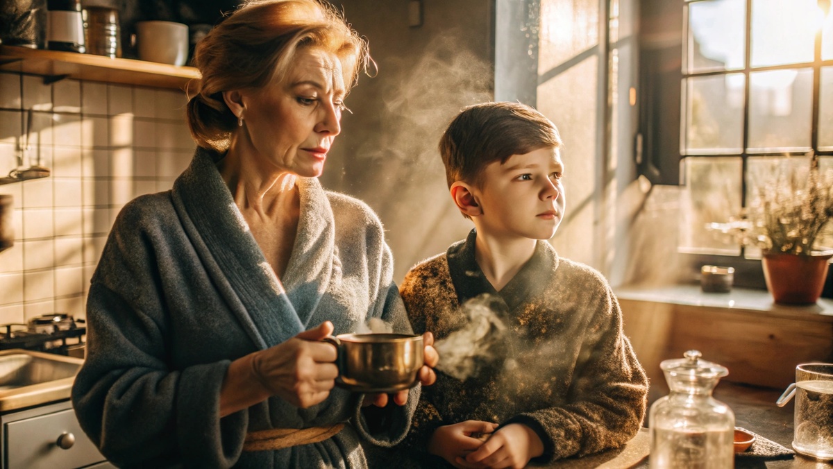 — Мам, ты опять сидишь в этом старом халате? — спросил Артём, входя на кухню и оглядываясь, будто бы проверял, всё ли на своих местах.