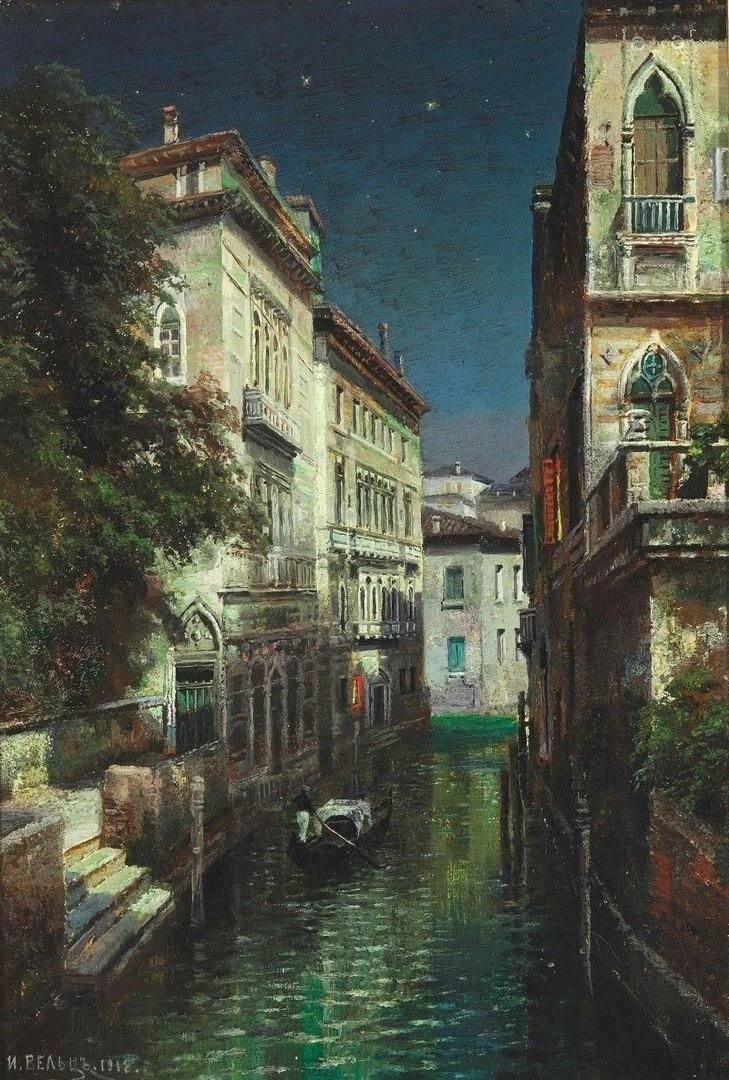 Иван Вельц — «Венеция в лунном свете» 🌖 В этой работе есть редкое ощущение присутствия. Художник не делает Венецию парадной, он показывает её в момент тишины, когда город дышит сам по себе. Узкий канал, мягкий свет луны, чуть дрожащие отражения — всё это создаёт атмосферу близости, словно зритель случайно оказался свидетелем чужой тайны. Вельц пишет лунный свет так, что он становится главным действующим лицом. Вода и каменные стены не спорят, а будто разговаривают между собой, отражая и поддерживая этот серебристый отблеск. В картине нет ничего громкого или эффектного, и именно поэтому она сильна — она притягивает вниманием к простоте. 🖼 Это та самая Венеция, которую редко показывают: не шумная и праздничная, а тихая и задумчивая. Картина напоминает, что у каждого города есть своя ночь, своя пауза, своя жизнь за пределами дневного шума. #история #искусство 😀 Звучи в унисон!