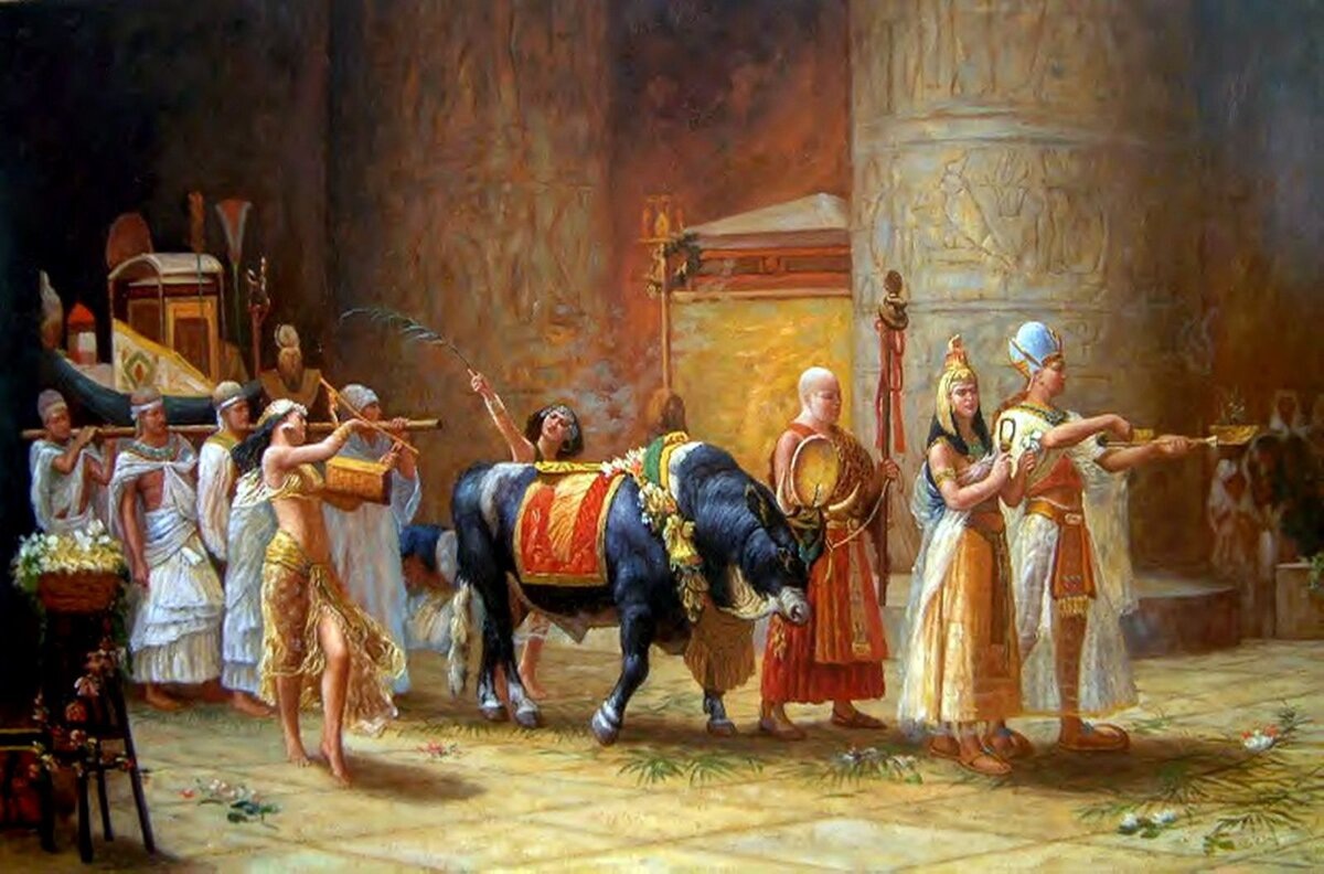 Можно сказать, что мифология Древнего Египта началась с животных. Поэтому никоим образом нельзя обойти их. Священных животных в Египте было великое множество, так что выделить какое-то одно, самое главное, совершенно невозможно. Но были животные, особо почитаемые во всём Египте. Мы уже говорили о кошках. Теперь пришло время вспомнить и о других животных. Конечно, в первую очередь стоит поговорить о домашних животных, которые имели огромное значение для первых скотоводов и которым начали поклоняться с тех пор, как возникли первые поселения. Кто помогал древним египтянам в их нелёгкой жизни? На ком возили грузы, пахали? Чьи мясо, молоко, шкуры использовались в хозяйстве с ранних пор? Конечно, в первую очередь это были быки и коровы, и естественно, им надо было выказывать почтение. Как бы ни странное это звучало, но бык и корова для древних египтян были разными животными, поэтому их культы сильно различаются. Бык в Египте олицетворял силу и плодородие и на более поздних этапах стал счит