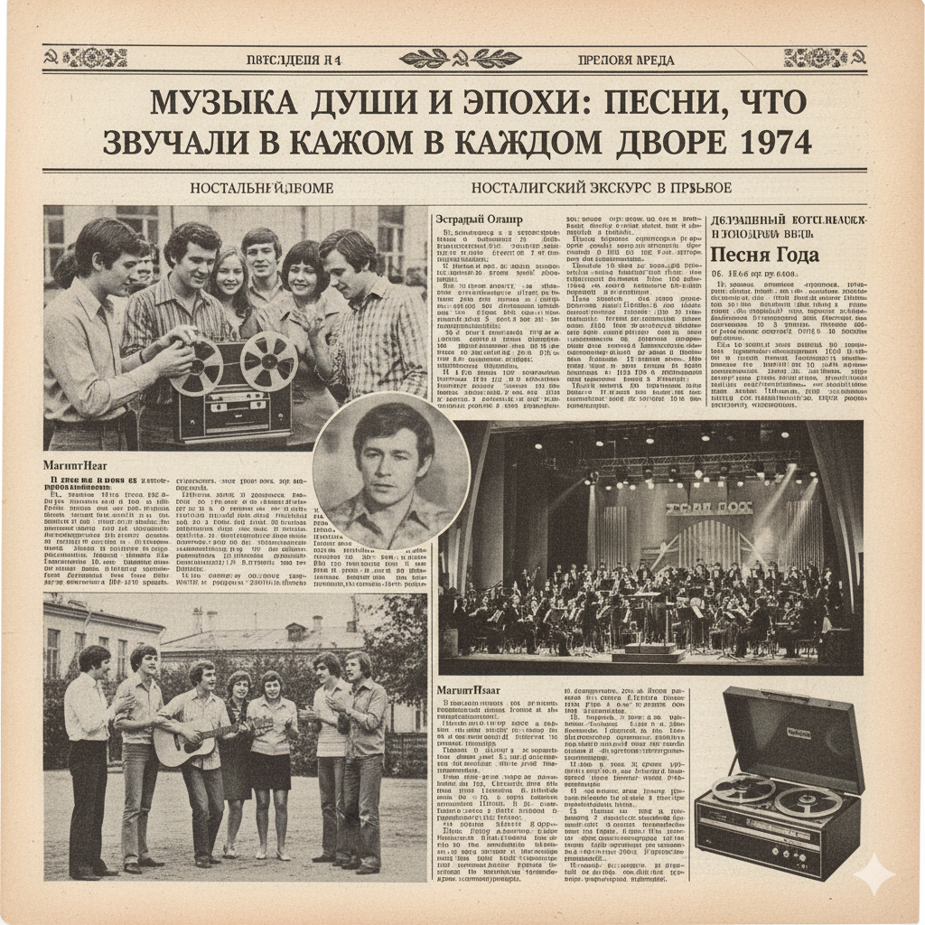 Сквозь туман времени 1974 год предстает перед нами как эпоха особенной стабильности и предчувствия перемен. Он пах свежим хлебом из булочной, морозным утром в конце января и летним теплым дождем, который, казалось, лил исключительно ради нашего удовольствия. Звуковой ландшафт того времени был так же многослоен и противоречив, как и сама жизнь в Советском Союзе. По радио и телевидению звучали одни песни — торжественные, лирические, прославляющие труд и любовь. Но в каждом дворе, на каждой кухне и в каждом студенческом общежитии звучала совсем другая музыка. Ее распространяли не государственные каналы, а дружеские посиделки, пленки бобинного магнитофона и, конечно, любимая всеми шестиструнная гитара.
