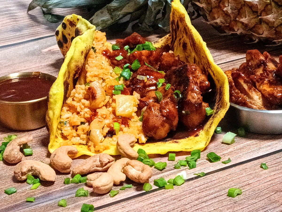 Chicken huli huli - популярное гавайское блюдо, придуманное в 1955 году Эрнестом Моргадо и Майком Асаги. Представляет собой курицу на гриле или вертеле, политую сладким соусом huli huli. Huli - гавайское слово, которое означает поворот, поскольку блюдо изначально готовилось на гриле, между двумя решетками, зрители кричали "huli", когда курицу переворачивали и поливали соусом. Сладкие, пикантные гавайские вкусы - идеально сочетание сладкого и острого. Сначала маринад, затем пикантный rub и восхитительный соус (глазурь) - поднимут вкус на совершенно новый уровень. И подадим с интересным рисом в гавайском стиле. 7 лепешек наан