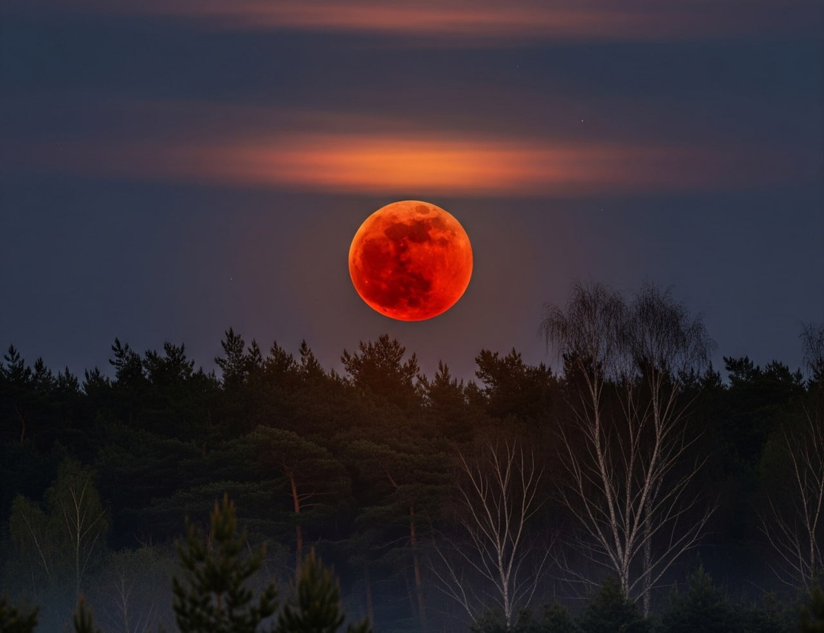 Необычный цвет возникает из-за преломления солнечного света в земной атмосфере. Когда планета оказывается между Солнцем и Луной, атмосфера отфильтровывает синие и зеленые лучи, пропуская только красный спектр. Цвет может варьироваться от яркого оранжево-красного до глубокого коричневого.