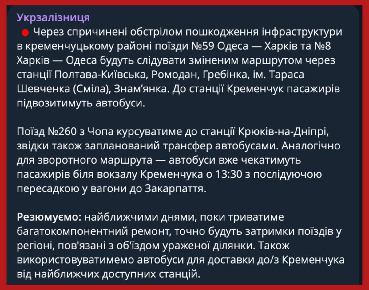 Ж/д мост через Днепр в Кременчуге поврежден. Поезда идут о обход, крюк - около 200 км. Это к вопросу о том, что может сделать герань против моста. А, если одновременно прилетело по букетику герани по каждому из мостов? Подпишись на Телеграм Александр Семченко