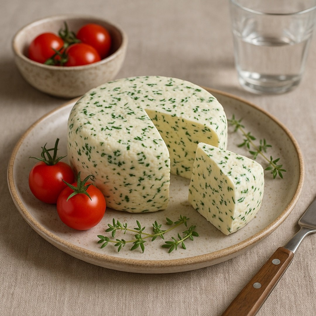 Домашний сыр с пряными травами и помидорами Ингредиенты ⤵️ 🔸 Творог 9% – 500 г 🔸 Помидоры черри – 150 г 🔸 Свежие пряные травы– 1 пучок 🔸 Чеснок – 2 зубчика 🔸 Соль, перец - 1 щепотка 🔸 Оливковое масло – 2 ст. л. 🔸 Сушеные прованские травы – ½ ч. л. Приготовление 🧀 1. Помидоры черри разрезать на половинки или четвертинки. Чеснок мелко порубить. Свежие травы мелко нарубить. 2. В миске соединить протертый творог, чеснок и большую часть свежих трав. Добавить соль и перец по вкусу. 3. Аккуратно влить оливковое масло и тщательно, но бережно перемешать массу до однородности. Попробовать и при необходимости добавить еще специй. 4. Осторожно вмешать в сырную массу нарезанные помидоры черри, чтобы они не слишком пустили сок. 5. Переложить готовый сыр в сервировочную пиалу, сверху украсить оставшимися свежими травами и сбрызнуть немного оливкового масла. Подавать с тостами, крекерами или свежим хлебом. Рецепт дня #домашний_сыр #творог #томаты #травы