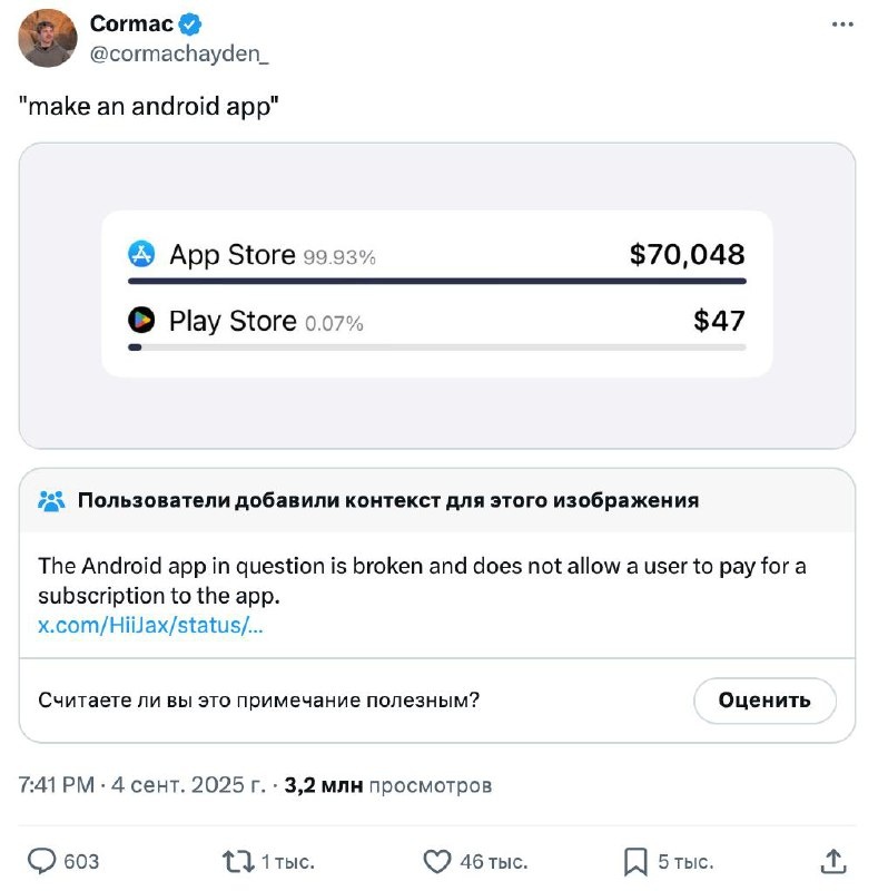 Разработчик посмеялся над количеством пользователей Android своего приложения, полагая, что никому оно не нужно и все давно перешли на iPhone.