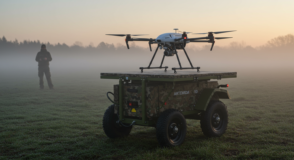 Представь себе тактическую задачу. Вместо того чтобы отправлять несколько операторов, каждый со своим дроном, на передовую выезжает одна мобильная платформа с «Артемидами».