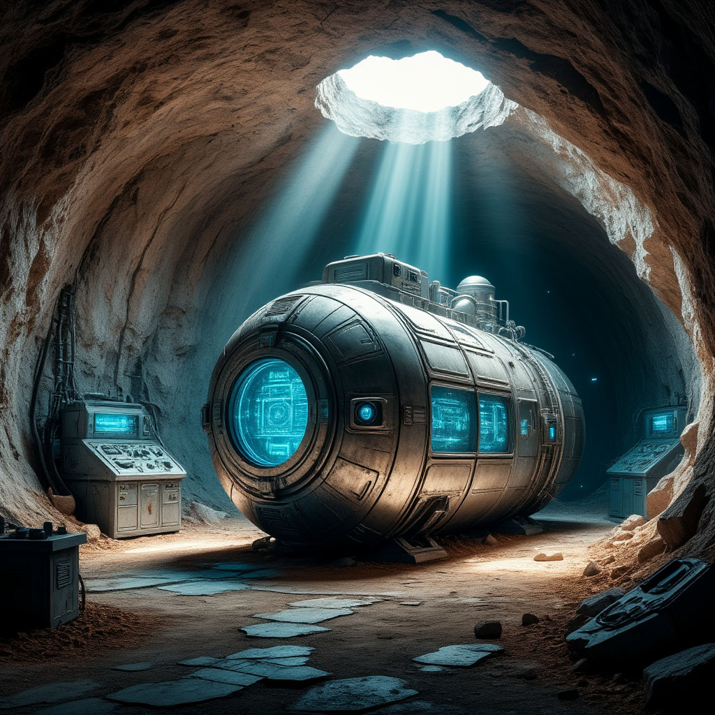 Внутри нас ждал не хаос разрушения, а идеальный порядок законсервированного времени. Приборы стояли ровными рядами, экраны были тёмными, на столах лежали аккуратные стопки журналов. Но самое главное — в центре главного зала, под единственным лучом света, пробивавшимся через трещину в куполе, стоял тот самый объект, на поиски которого мы потратили столько сил. Не серверная стойка с сияющими огоньками, которую я ожидала увидеть, а массивный, монолитный цилиндр из матового металла, похожий на гигантскую капсулу. На его корпусе тускло поблёскивала табличка с едва видимой надписью: «Крио-сейф. Протокол LONGEVITAS. Аварийный режим».
