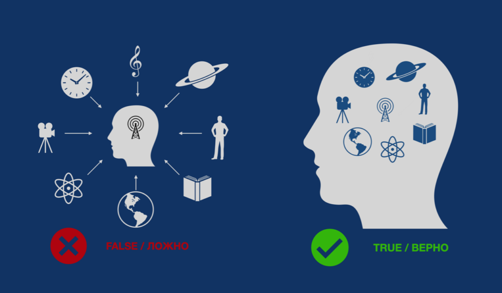 Как простого человека ловят на перехват религиозного управления? Для этого "Британские учёные" создали целые разделы так называемых естественных наук, основная задача которых внушить людям, что существует некий внешний объективный мир, который нужно изучать для приближения к счастью, и в котором даже живёт сам Бог (там сверху). В результате космические корабли становятся всё дороже и дороже, а рабы, которые работают на их производство, всё беднее и беднее. Каждый мальчик аж до трясучки мечтает исследовать дальний космос на звездолёте с ядерным двигателем, поспать в анабиозе, нырнуть в чёрную дыру и вынырнуть на задворках вселенной. Вся эта чушь специально сконструирована для порабощения фокуса нашего восприятия. Вы заметили, что как только у мировых олигархов начинаются проблемы с деньгами, то сразу происходит массированная бомбардировка идеями освоения Луны, Марса, и ожидания нашествия инопланетян? Таким образом используется механизм обмана, представленный на рисунке: