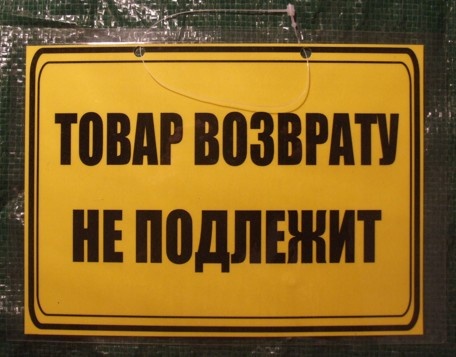 - "Товары по распродаже не возвращаем" — нарушение закона.