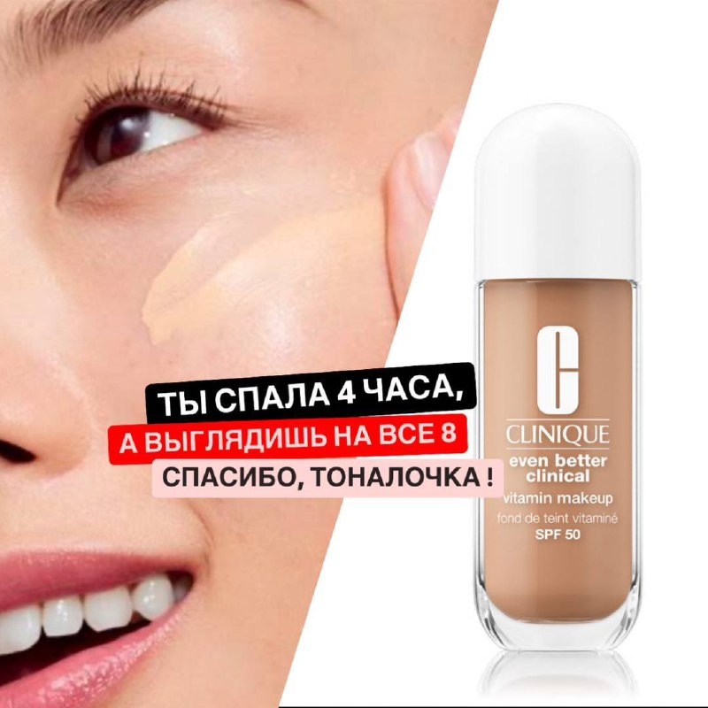Ну что, тоналка с интеллектом — это больше не фантастика! Clinique, любимчики дерматологов и всех, кто не готов выбирать между уходом и макияжем, выкатили новинку, и мы такие: «Ну всё, на свидание с кожей теперь только с ней!» Even Better Clinical Vitamin Makeup SPF 45 — да, звучит как название дипломной по биохимии, но поверь, твоя кожа от этого в восторге. --- Что в ней особенного? - ✨ Легчайшая текстура — ложится на лицо, как тончайшее облачко, не подчеркивает шелушения и не плывет к обеду. - ☀️ SPF 45 — защита от солнца на уровне "мама, я готова к Бали". - 💊 Витамины в составе — а именно C, E и ниацинамид. Что это значит? Ты не просто скрываешь несовершенства, а реально их лечишь! - 💧 Увлажнение + выравнивание тона + сияние, как после 8 часов сна (даже если спала 4 и плакала над сериалом). --- Для кого? Для всех нас, кто хочет тон, уход, защиту и сияние — в одном флаконе. Особенно если тебе, как и мне, лень нанести сначала крем, потом солнцезащиту, потом базу… ну вы поняли.