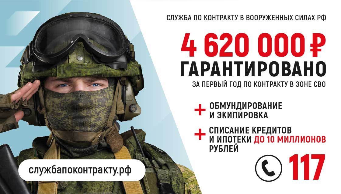 Вступай в ряды настоящих патриотов, присоединяйся к СВОим! ➡️ Чтобы поступить на военную службу по контракту, нужно обратиться в пункт отбора на военную службу (https://clck.ru/3CW3MK)или военкомат (https://clck.ru/3CW3Pp) по месту жительства. Подать заявку можно через единый портал государственных услуг (https://contract.gosuslugi.ru/) или сайт Минобороны России (https://clck.ru/3CW6TK). ❕ Подробности на сайте http://www.krskstate.ru/voen_kontrakts и по телефону 117, военкомат 8(39145)6-31-72 и пункт отбора 8-950-405-38-86.