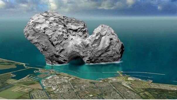 Относительные габариты кометы Чурюмова-Герасименко, на которую летал космический аппарат Розетта. - не третей картинке , на фоне Лос-Анжелеса (ну и от себя пару кадров кометы с Розетты) Nimistar Flow@dzen Nimistar Flow@Telegram