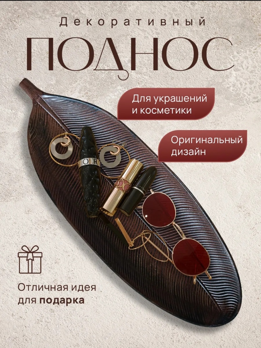Поднос в форме листа из прессованного дерева — это стильное и функциональное решение для хранения мелочей. Он лёгкий, но выглядит изысканно, добавляя интерьеру завершённость и элегантность. Можно использовать для ключей в прихожей, украшений на туалетном столике или свечей в гостиной.