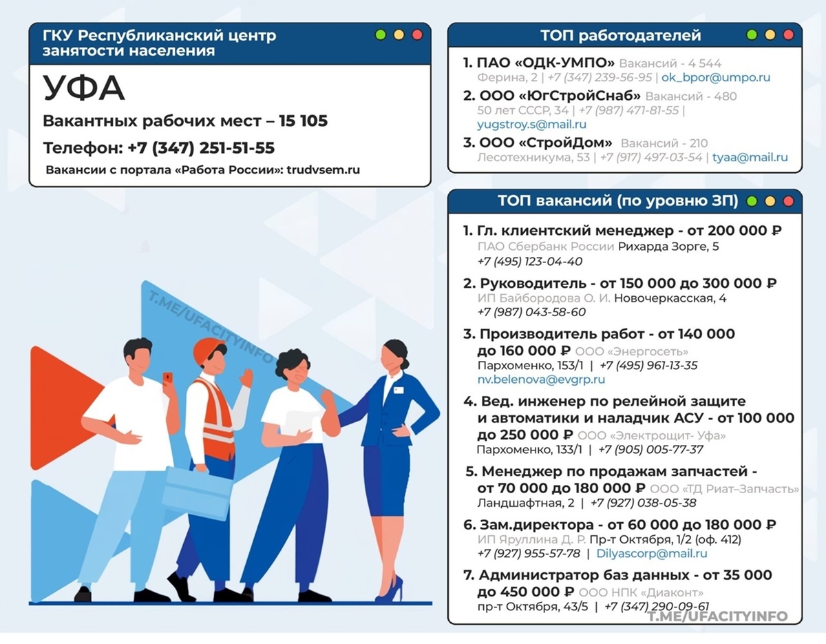Телефон «горячей линии» Центра занятости населения Уфы 8 (347) 251-51-55.