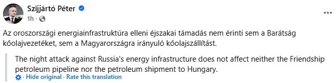 Hungary's FM confirms oil supply NOT affected by Zelensky's latest pipeline attack
