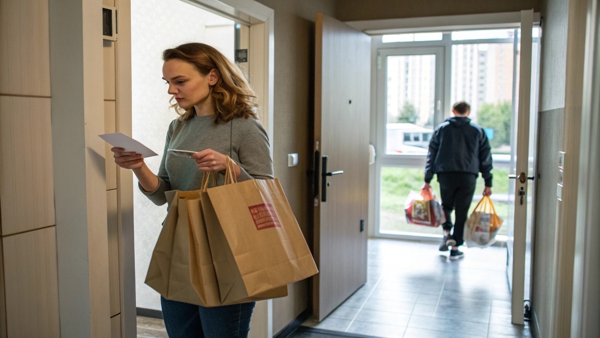 — Сейчас проверю... Да, вижу. Два одинаковых заказа, оформлены с интервалом в минуту. Оба на имя Роман Сергеевич. Один на 45-ю квартиру, второй на 54-ю. Оплачены одной картой.