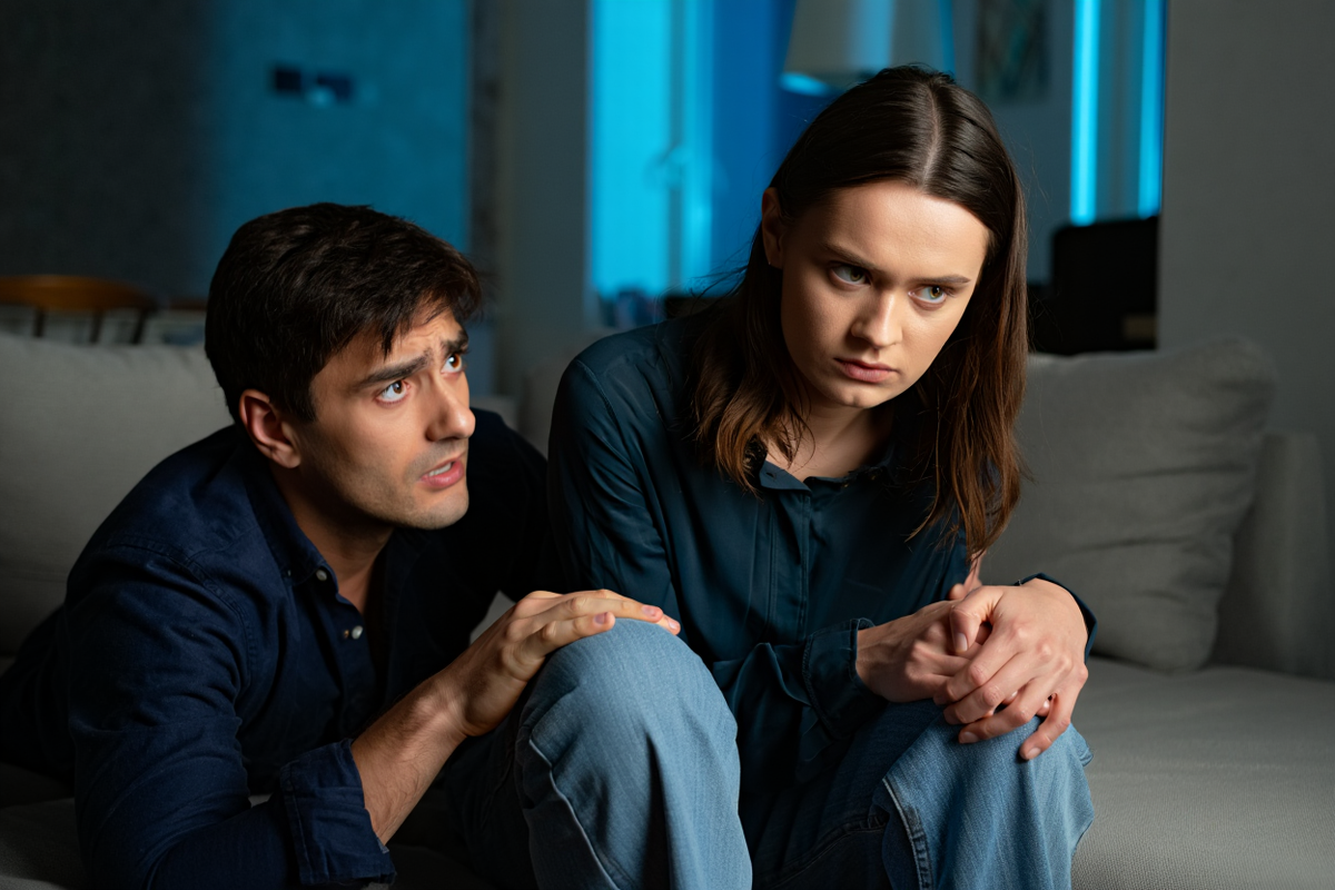 Алина села на диван, сложив руки на коленях. Артём опустился рядом, но она отстранилась.