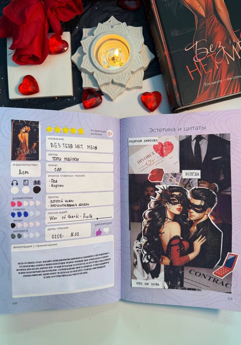 🤩🤩новый разворот читательского дневника по книге Тори Майрон - Без тебя нет меня