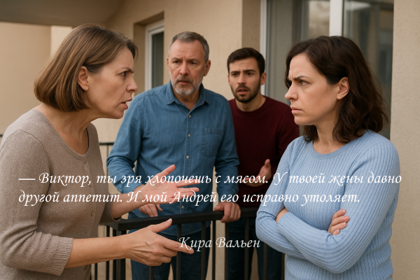 — Виктор, ты зря хлопочешь с мясом. У твоей жены давно другой аппетит. И мой Андрей его исправно утоляет.
