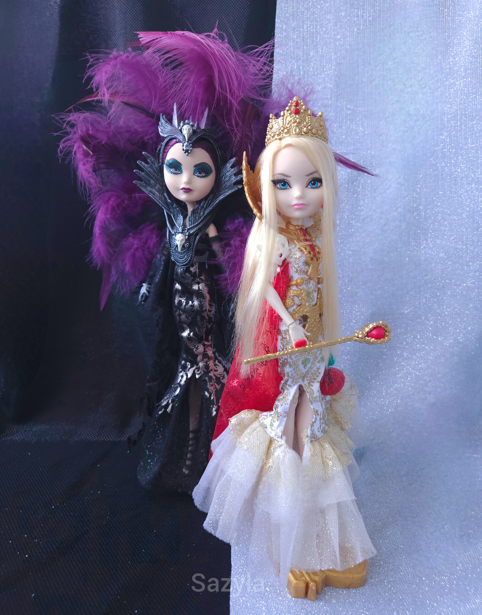 По истории сеттинга Ever after high Эппл Вайт и Рейвен Квин - персонажи одной сказки, обе должны в будущем стать королевами, но по разные стороны баррикад… Изначально я хотела написать про самих кукол, но поняла, что, в итоге, каждая заслуживает отдельного обзора, а иначе статья получится ну оооочень длинная. Так что тут будет только их совместная фотосессия. Единственное, что тут стоит упомянуть: моя кукла Рейвен не Комик Кон, а бюджетная версия с моими переделками. Хочу внести это уточнение, чтобы никого не вводить в заблуждение. Обе куклы представляют из себя фантазию на тему того, что девочки закончили школу и приняли свои сказочные судьбы. Хотя образ Рейвен Квин все же попал в мультфильм в Играх Драконов. Я люблю смотреть разные варианты сказок и то, как конкретный автор что-то интерпретирует. В данном случае, мне нравится линия взаимоотношений этих двоих. С одной стороны, Рейвен не хочет себе судьбу злодейки-изгнанницы, да и творить зло ее тоже не прельщает. Но при этом