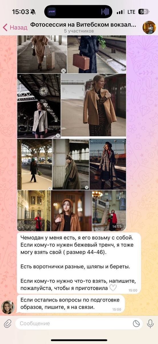 Дорогие девушки✨ Фотограф уже отправила рекомендации по образам для подготовки к фотосессии на Витебском вокзале 12.09 Осталось 2 места Анонс: https://dzen.ru/media/kulturnyidevichnik/anons-fotoden-na-vitebskom-vokzale-68a4194d02158b7c08cfdd03 Запись через @devishnik_spb Реквизит Мария берет под ваш запрос, ждем вас✨