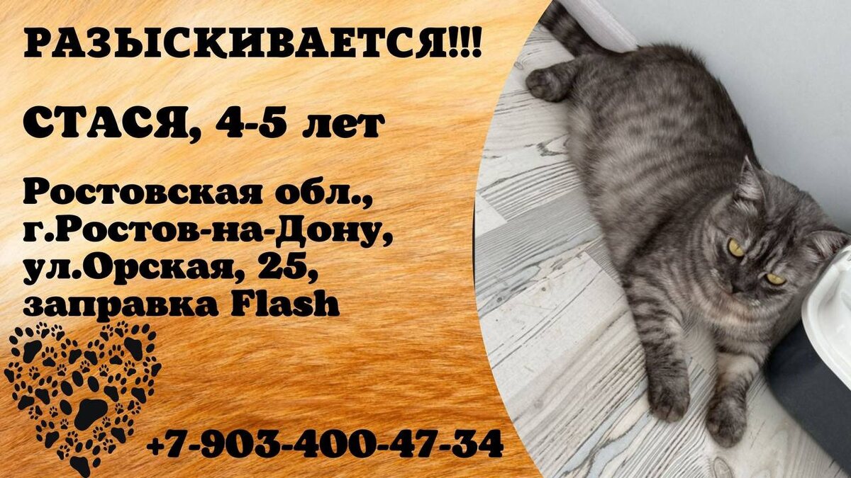 Пропала серая кошка Стася , 4-5 лет, на Орской 25, заправка Flash, город Ростов-на-Дону, 28 апреля 2025 года. Срочно сообщите, если найдёте! Если Стася у кого-то , то верните ее пожалуйста , сердце разрывается . Очень люблю Стасю и скучаю по ней, помогите , пожалуйста.Вознаграждение 20000₽. Анна: 89034004734.
