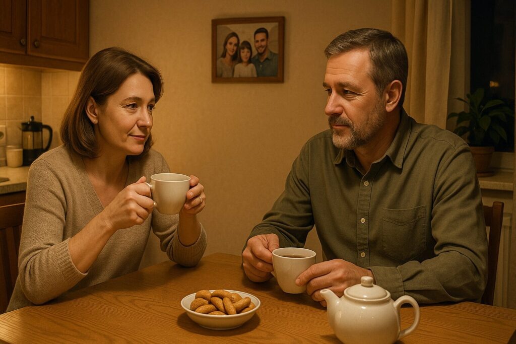 В один из вечеров Марина застала маму и Виктора Петровича за чаем на кухне. Они обсуждали какой-то детектив по телевизору, и мама увлечённо доказывала, что убийца — дворецкий.