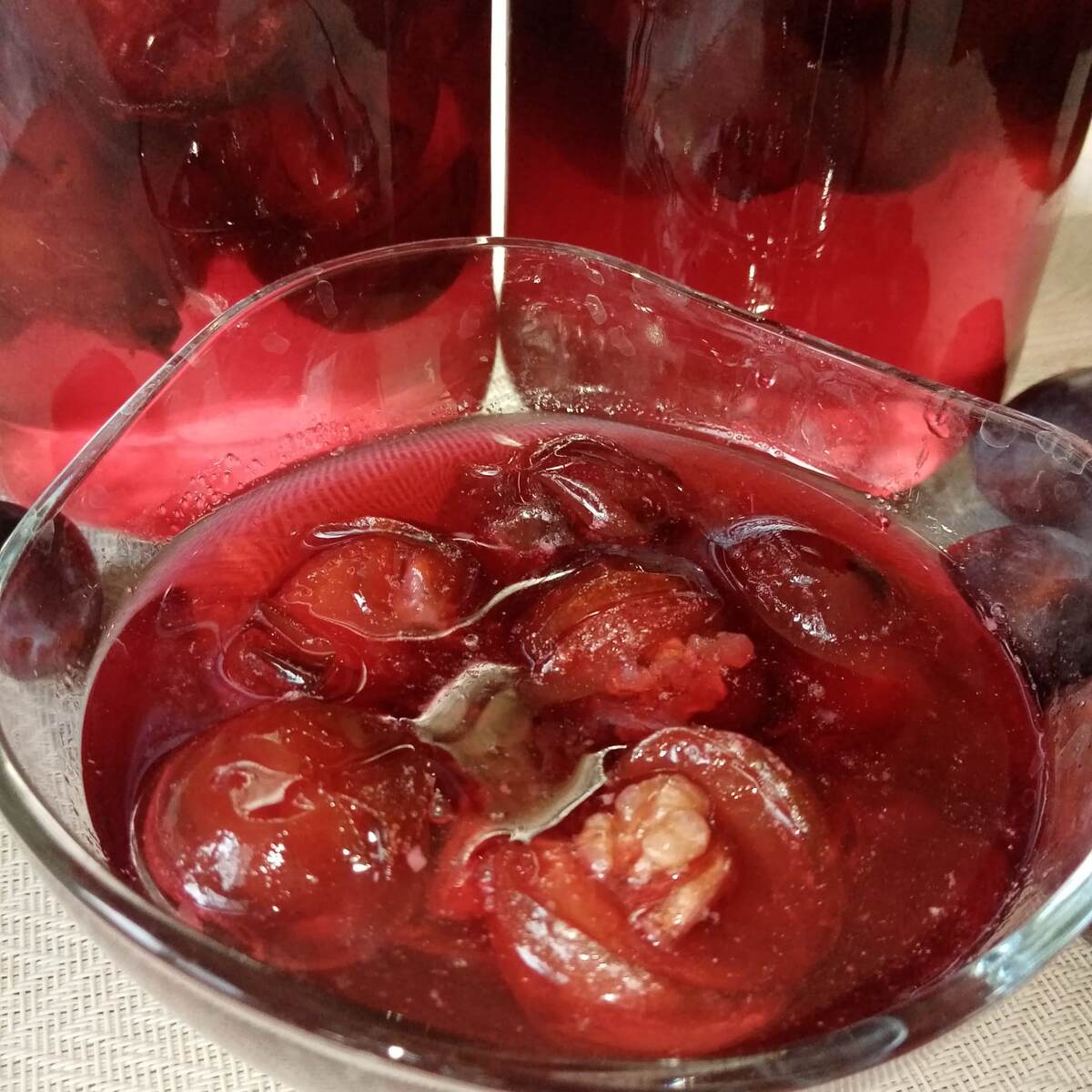 Рассмотрим пошагово процесс приготовления этого вкуснейшего десерта. Количество ингредиентов указано в конце статьи. Подготовка продуктов Выберите плотные сливы одинаковой величины с легко отделяющейся косточкой. Это могут быть сорта "венгерка" или "чернослив". Тщательно промойте сливы и дайте воде стечь. Удалите косточки деревянной палочкой. Разделите грецкие орехи на четыре части и поместите одну четвертинку в каждую подготовленную сливу. Приготовление сиропа Сварите сахарный сироп, используя указанное количество воды и сахара. Дайте сиропу немного остыть перед использованием. Если хотите получить более густой сироп поварите подольше или уменьшите количество воды. Мы же используем сливовый сироп для приготовления морса. Варка варенья Опустите начинённые орехами сливы в приготовленный сироп. Хорошо встряхните ёмкость, чтобы каждый плод оказался погружённым в жидкость. Поставьте кастрюлю на средний огонь и проварите варенье около 1-2 минут. Затем снимите с огня и дайте настояться,