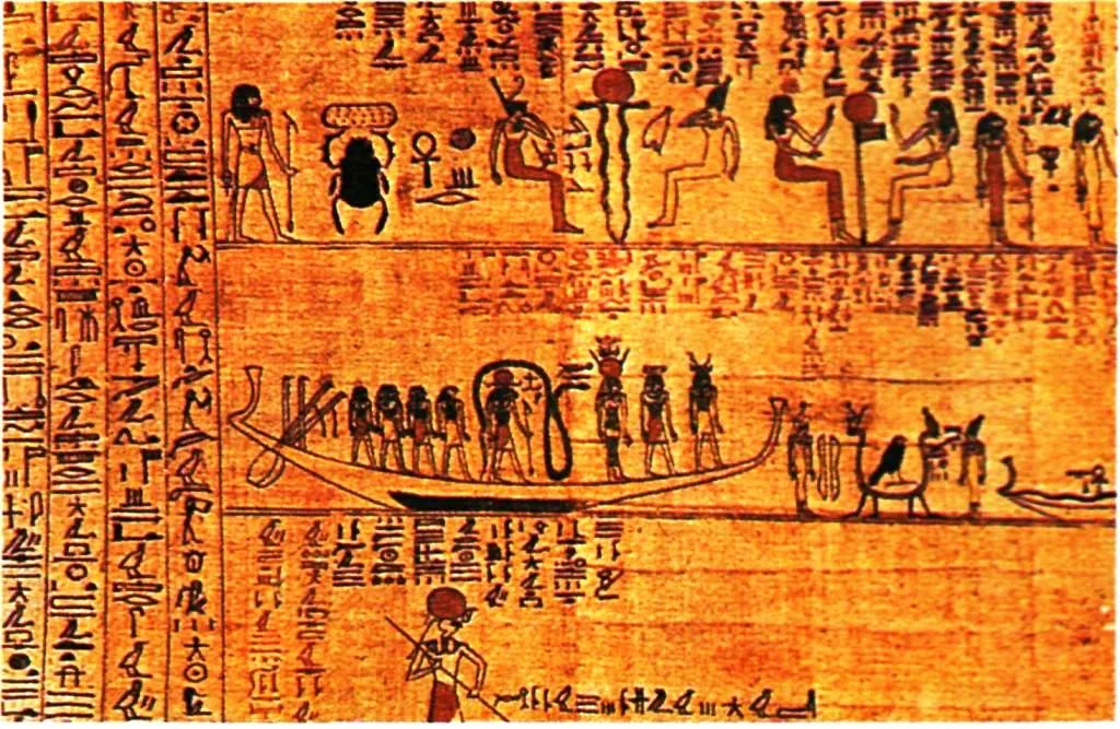 Самый значительный источник сведений по загробному миру - это текст, известный в египтологии под названием "Книга Амдуат" (в переводе др. егип. "то, что в Дуате"). С периода правления XVIII династии он высекается на стенах царских гробниц. В книге дается описание ночного путешествия солнечного бога по двенадцати часам ночи, которое сопровождается изобразительным материалом. Она начинается с того, что Ра, изображенный с головой барана, отправляется в путешествие в ладье в сопровождении других богов. Именно в таком облике Ра представал в ночные часы. В шестой час ночи он соединяется с усопшим царем, олицетворением которого является Осирис. Это символизирует будущее воскресение умершего. В седьмом часу ночи происходит кульминационное сражение с Апопом, а последний, двенадцатый час ночи, завершает цикл, и Солнце возрождается в образе Хепри. При этом очень важную роль играло знание топографии Дуата, имен жителей и стражей подземного мира, всех необходимых заклинаний. Только это делало возможным последующее возрождение умершего подобно солнцу на востоке.