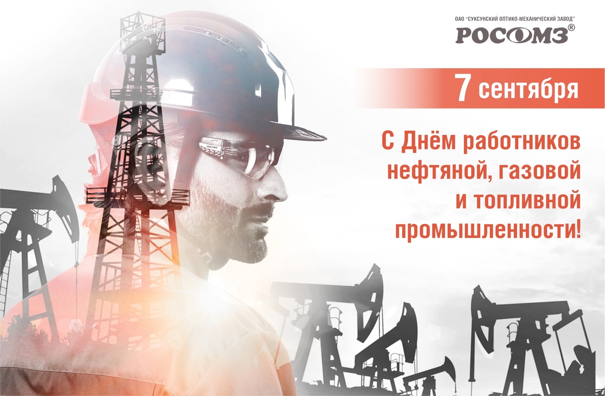 7 сентября — особая дата для тех, кто трудится в нефтяной и газовой отраслях, обеспечивая энергетическую независимость нашей страны. Коллектив Суксунского оптико-механического завода, производителя передовых средств индивидуальной защиты, непрерывно совершенствует продукцию, внедряя новейшие технологии и создавая максимально комфортные условия труда для вашей безопасности на рабочем месте. Уважаемые профессионалы нефтяной и газовой отраслей! Желаю вам крепкого здоровья, личного счастья, стабильности и безопасного труда. Пусть каждый рабочий день приносит успехи и удовлетворение, а жизнь наполняется радостью, яркими событиями и приятными сюрпризами! С наилучшими пожеланиями, коллектив РОСОМЗ