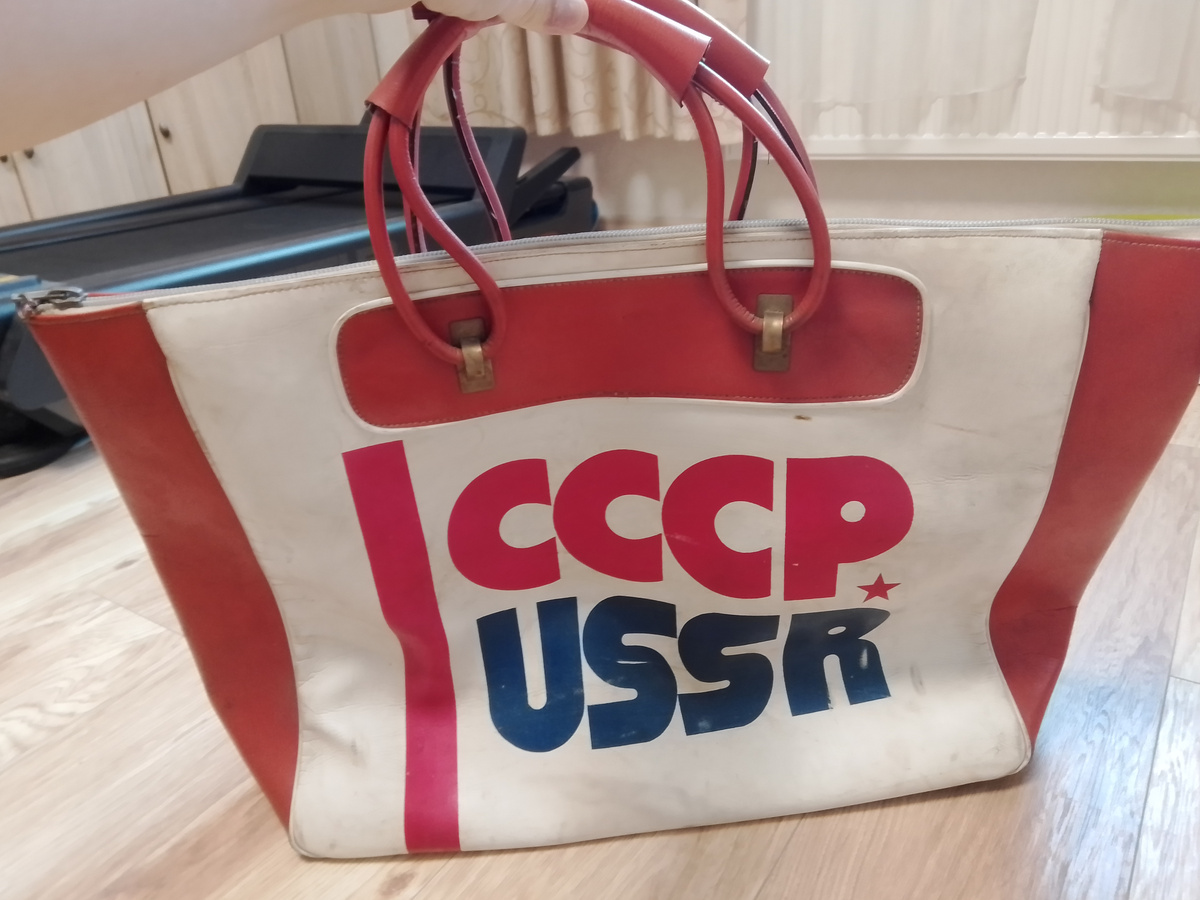 Нашел её в гараже среди разного хлама. Материал изделия мне непонятен, наверное это кожзам. Если вы заметили, то это именно она на моём логотипе в Дзене. Дизайн сумки очень стильный, нет ничего лишнего. На Авито видел её различные цветовые вариации, но суть та же. Посмотрим обратную сторону. Там же видел с таким принтом сумку меньшего размера, но для ношения на плече с помощью ремня. Данный экземпляр предназначен только для рук. Прошивка ручек от времени немного повредилась. Но, всё легко поправимо. А так, состояние ее весьма бодрое и вся фурнитура на месте и молния работает. Откроем её и посмотрим, что внутри. Тут, как видно, всего одно отделение, но еще есть кармашек для хранения мелких вещей. Вот он нагляднее. Смотрим бирку изготовителя и год выпуска. У кого была такая и для чего вы её использовали? Посты о СССР всегда здесь!