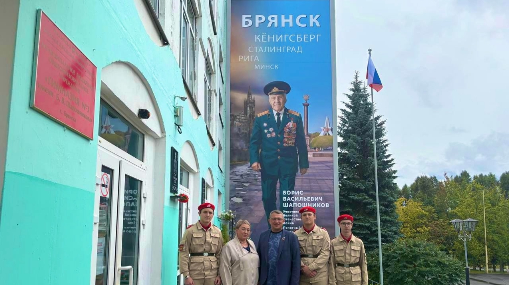 На входе в гимназию №3 Брянска учащихся каждый день встречает ветеран Великой Отечественной Войны Борис Шапошников. Баннер с изображением героя недавно установили на фасаде здания. Его создали в рамках федерального проекта «Лица Героев», рассказали в группе «Деснянская волна». Масштабный баннер изображает ветерана в полный рост. За спиной полковника – брянский Курган бессмертия и Королевский замок в Кёнигсберге, который ему пришлось штурмовать в апреле 1945-го. Имя фронтовика присвоили образовательному учреждению в 2021 году. Прошлым летом Борис Васильевич отметил 100-летний юбилей. Несмотря на почтенный возраст, ветеран занимает активную жизненную позицию. В гимназии Брянска установили баннер с изображением ветерана войны