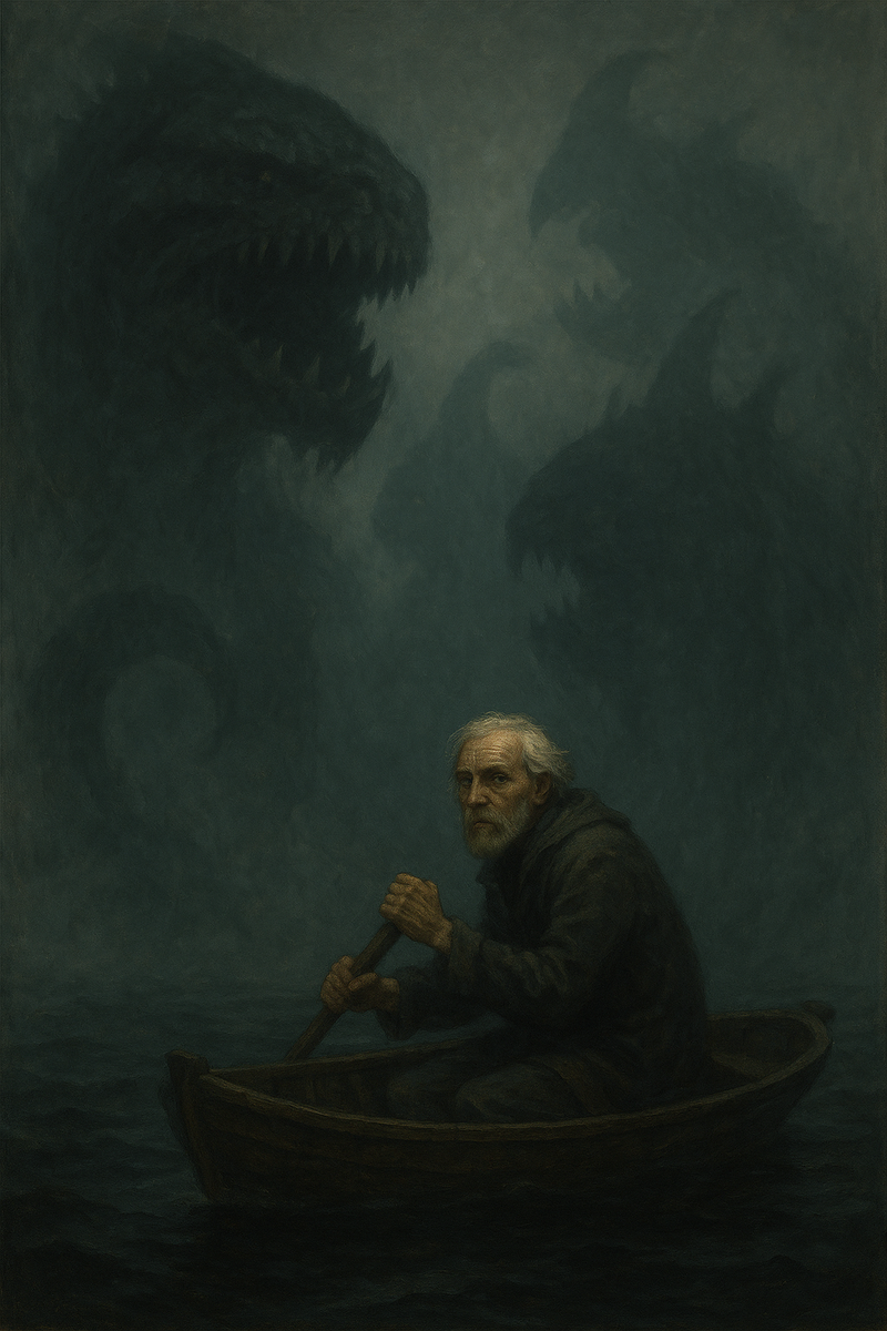С диким хохотом и криками о каких-то чудищах, и о том, что никогда им его не взять, выскочил Эйженс на пирс, и вприпрыжку, с веслом в руке, кинулся на набережную, по направлению к мэрии. И брат едва успел догнать его, и при помощи двух дежурящих на ратушной площади жандармов скрутил, и сразу повёл в городской приют для умалишённых.