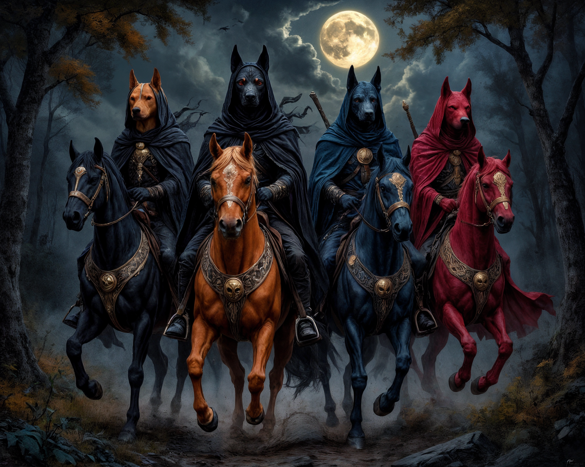В апокрифических протоколах старой Брюссельской школы трансгуманизма, там, где евроинтеграция смыкается с эсхатологией, говорится не о грубых сакральных сущностях, но о четырех ноосферических квазипсадниках Евроапокалипсиса. Это не всадники из плоти, но четыре ультимативных состояния разума, четыре сингулярности, рожденные в тот миг, когда мысль освобождается от бремени своего носителя.