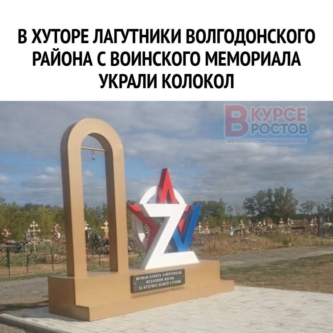 🤷♂️ В хуторе Лагутники Волгодонского района с воинского мемориала украли колокол Он исчез через четыре дня после установки. Новости Ростова здесь 👉 @vkurserostov