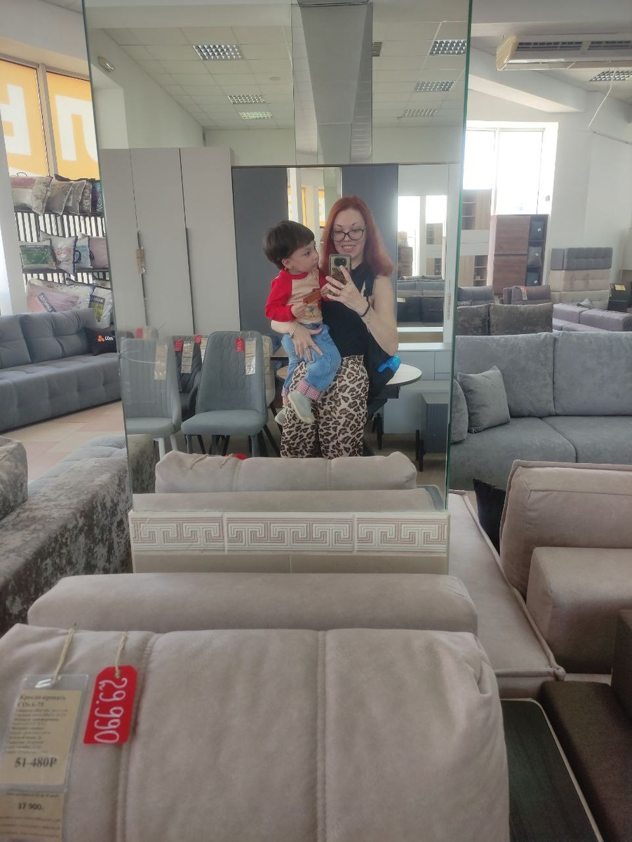 Великолепная прогулка по мебельному магазину 🛋️ Тёме очень понравились слоник 🐘 и овечка 🐑 А мне белый комод, ну и конечно уютные диванчики тоже)))
