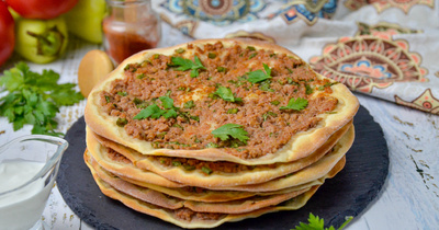 Лахмаджун по турецки — одно из самых популярных и любимых блюд в Турции. Это тонкая лепешка, покрытая, слоями измельченного мяса, лука, перца и специй. Лахмаджун часто называют “турецкой пиццей”, хотя на самом деле это совершенно уникальное блюдо со своей собственной историей и традициями. Лахмаджун имеет давнюю историю, которая уходит своими корнями в Центральную Азию. Считается, что это блюдо было придумано кочевыми племенами, которые готовили его на открытом огне в специальных печах. Со временем лахмаджун распространился по всей Турции и стал популярным уличным едением. Чтобы приготовить лахмаджун по турецки, вам понадобятся следующие ингредиенты: Сначала нужно замесить тесто. В большой миске смешайте тёплую воду, сахар, дрожжи и муку. Перемешайте до получения однородной массы, затем добавьте соль, оливковое масло и ещё раз перемешайте. Тесто должно быть эластичным и не прилипать к рукам. Затем нужно приготовить начинку. В отдельной миске смешайте измельчённое мясо, лук, перец, тома