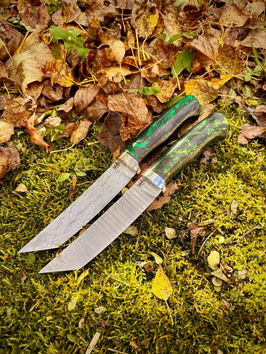 В наличии братья Ронины ⚔️ Рукояти из карбона Нержавеющая дамасская сталь 🔥 ⚙️ТТХ: Длина изделия, 275мм Длина клинка, 144мм Ширина клинка, 28мм Толщина обуха, 3,3мм Твердость стали, HRC 59-60 Отправка ТК Сдэк в любую точку 🚀