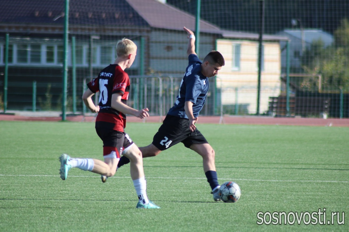 📌 Пропустив два мяча в первые 15 минут, сосновцы собрались к середине первого тайма и сократили отставание – Антон Щербаков точным ударом поразил ворота соперника. На перерыв команды ушли со счётом 1:2.
