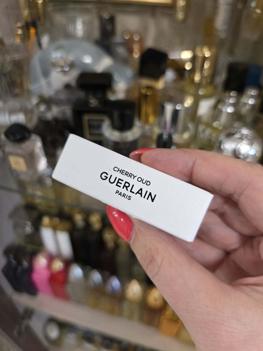 Также я: ой, Cherry Oud Guerlain, какая прелесть, такой мягкий древесный уд с вишневой наливкой и бордовой розой, так мне нравится❤️