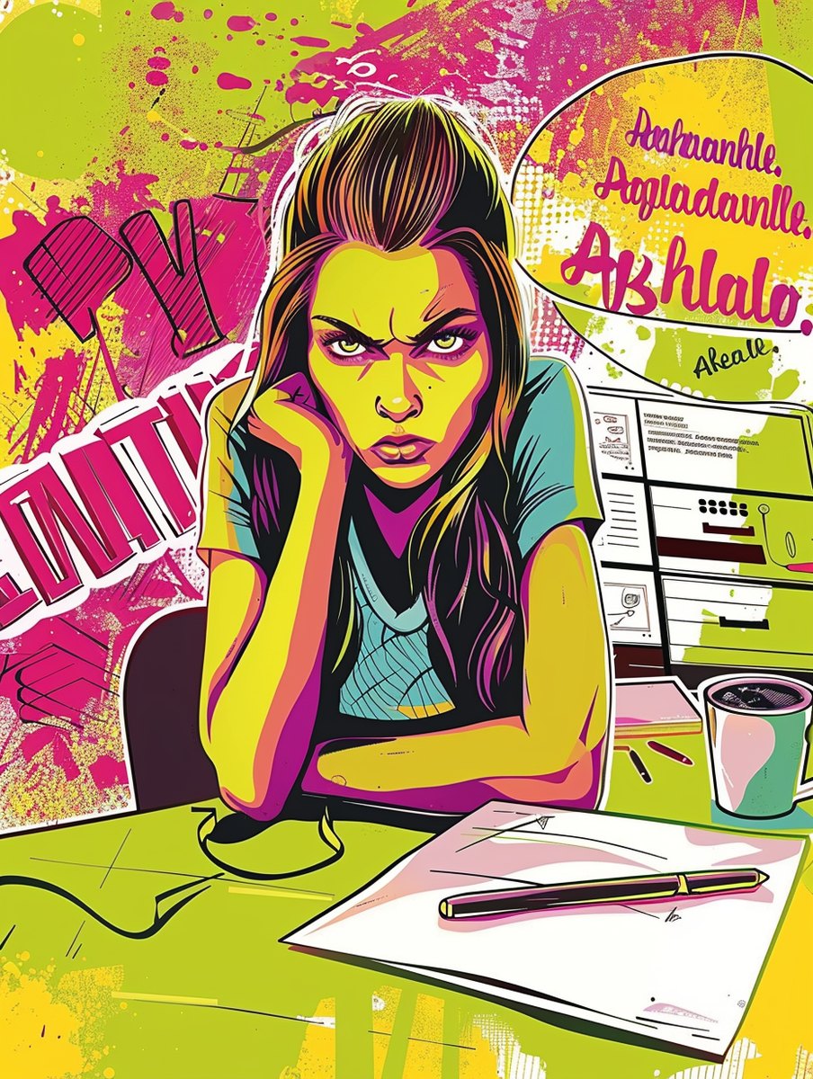 Ну вот что мне делать? Я уже «закипаю». A — Angry (злая).