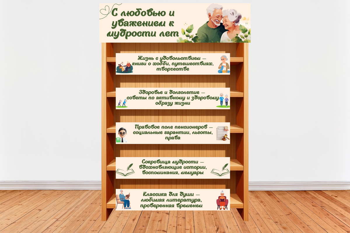 Осень — пора мудрости, тепла и уютных красок. И именно в это время мы отмечаем один из самых душевных праздников — Международный день пожилых людей. Это прекрасный повод выразить свою любовь, заботу и уважение старшему поколению, чья мудрость и опыт являются настоящей ценностью. Библиотеки, культурные центры и образовательные учреждения по всей стране готовятся к этому дню, чтобы организовать для виновников торжества по-настоящему теплые и запоминающиеся мероприятия. Мы хотим помочь вам создать особую атмосферу, поэтому спешим рассказать о готовых решениях для праздничного оформления! Вам не придется тратить время и силы на долгие приготовления — всё уже готово. 📌 Выставка «С любовью и уважением к мудрости лет» Планируете тематическую выставку книг, фотографий или рукоделия? Сделайте ее по-настоящему яркой и структурированной с помощью нашего готового набора для оформления. Что входит в комплект? Всё, что вам нужно, — распечатать и разместить. Эффектно и профессионально! Цена всего: 1