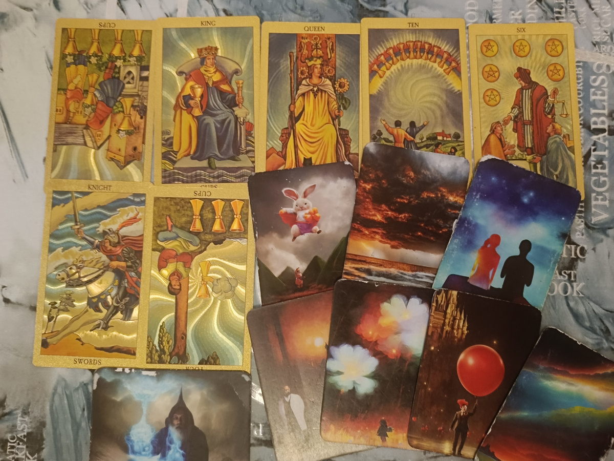 Дорогие дамы, давайте обратим взор к вопросу, что, быть может, тревожит ваши сердца: как же на самом деле ваш женатый возлюбленный относится к той, что носит его фамилию? Если этот вопрос волнует вашу душу, значит, ситуация эта — ваша. И если эта мысль недавно посетила вас, знайте — я читаю расклады из общего потока, и вот что открывается. Первая карта — Шестерка Кубков в перевернутом положении — говорит о его отношении к матери его детей. Дети, скорее всего, уже подросли, но карта перевернута… Знаете, дети, увы, становятся для него источником напряжения. Вы наверняка могли подмечать это в его общении с ними — некое недовольство, раздражение от родительских обязанностей. Далее мы спрашиваем о жене, а здесь — взгляните — карта говорит о вас. Вы - Королева Жезлов — яркая, пламенная, сексуальная женщина, и, конечно же, увлекающаяся эзотерикой. Не случайно вы сейчас смотрите этот расклад. И он любит вас, между прочим! Он — Король Кубков, и его сердце тянется к своей Королеве Жезлов