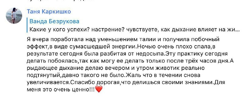 в течение дня живот снова увеличивается, потому что не включены глубоки мышцы, не работает еще тазовое дно, в пояснице стоит напряжение. Потому я и повторяю - ОДНА ТЕХНИКА не сработает. Я даю вам элементы для того чтобы вы увидели - оно работает, изменения есть. Но если вы хотите стабильных изменений, чтобы НАСОВСЕМ ушел живот - нужно освоить всю систему - пройти курс ВЛЮБИСЬ В СВОЙ ЖИВОТ