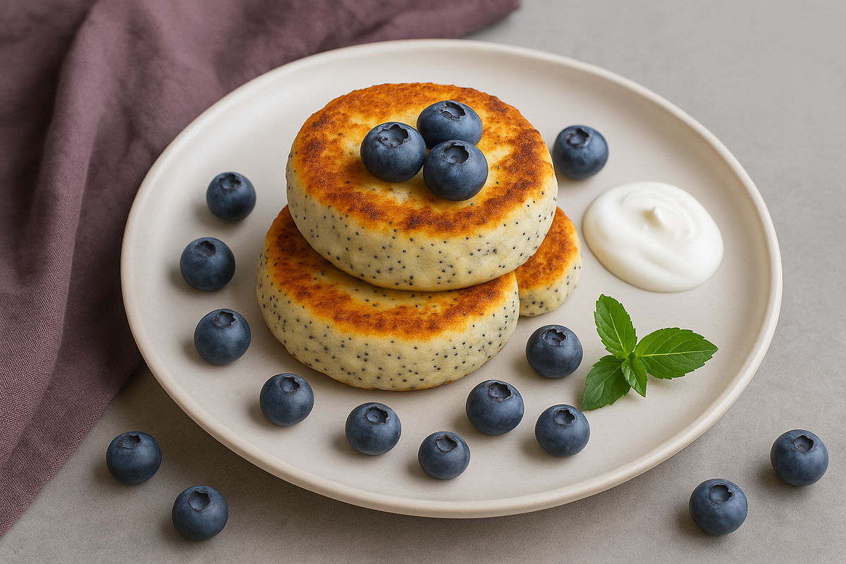Сырники с маком — это нежное угощение, в котором простота сочетается с оригинальностью. Иногда достаточно маленькой детали, чтобы привычный рецепт заиграл по-новому. Ингредиенты: Творог-350 г.; Мука-50 г.; Разрыхлитель-3 г.(опционально); Мак-30 г.; Яйцо-1 шт.; Сахар-30 г. Видео-рецепт здесь Творог разминаем вилкой вместе с сахаром, чтобы масса получилась однородной, мягкой и без крупных комочков. После этого постепенно добавляем остальные ингредиенты и тщательно перемешиваем. Рабочую поверхность слегка присыпаем мукой, чтобы тесто не прилипало и было удобно работать. Из полученной массы формируем длинную «колбаску» и делим её на несколько равных частей. Каждый кусочек аккуратно скатываем в ладонях и придаём ему аккуратную форму. Разогреваем сковороду с небольшим количеством растительного или сливочного масла и выкладываем сырники. Жарим на среднем огне: сначала с одной стороны до золотистой корочки, затем переворачиваем и дожариваем с другой. Чтобы сырники хорошо прожарились внут
