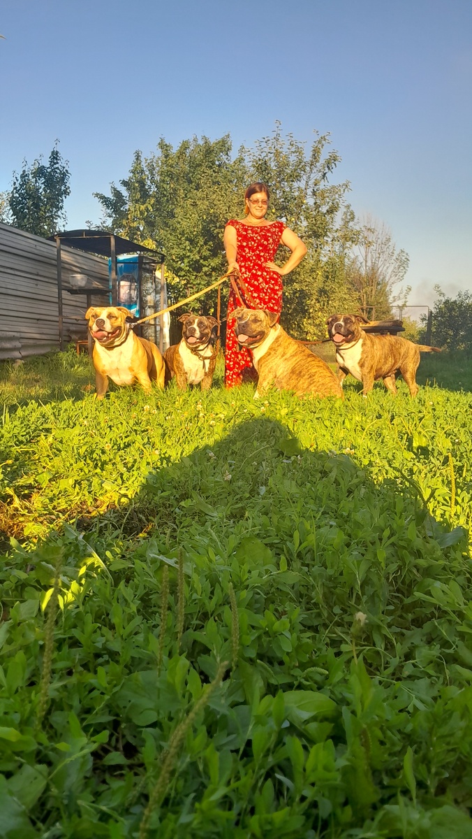 Слева-направо: Ника, Ума, Тигра, Ева. Посередине в красном платье - я) Спортсменки, комсомолки, красавицы. (Зачеркнуто, кроме красавиц) 🤩 Любимки, лапули, доченьки, зайки мои сладенькие. 🥰 Ну это конечно домашние имена. В родословных все написано намного длиннее, сложнее и великолепнее 😊 В данный момент, три из них беременны и мы со дня на день ждём щенков. Я конечно очень волнуюсь и переживаю, хотя казалось бы, за столько лет можно привыкнуть и отрастить дзен. Но ничего отрастить так и не получилось, несмотря на опыт. Чувствую себя перед каждыми родами, как первоклашка. Но каждый раз стараюсь не терять оптимизма! Поэтому! ‼️ Если вам надоел негатив в сети, если вам нужны положительные эмоции, я приглашаю всех любителей породы амстаффтерьер и остальных членов секты "собачники" на свой новый канал. Обещаю! Здесь будет интересно, душевно, весело! 🤩 Здесь будут запрещены: нытье, мат, оскорбления, провокации, страшилки и негатив любого типа. Здесь будут приветствоваться взаимная подде