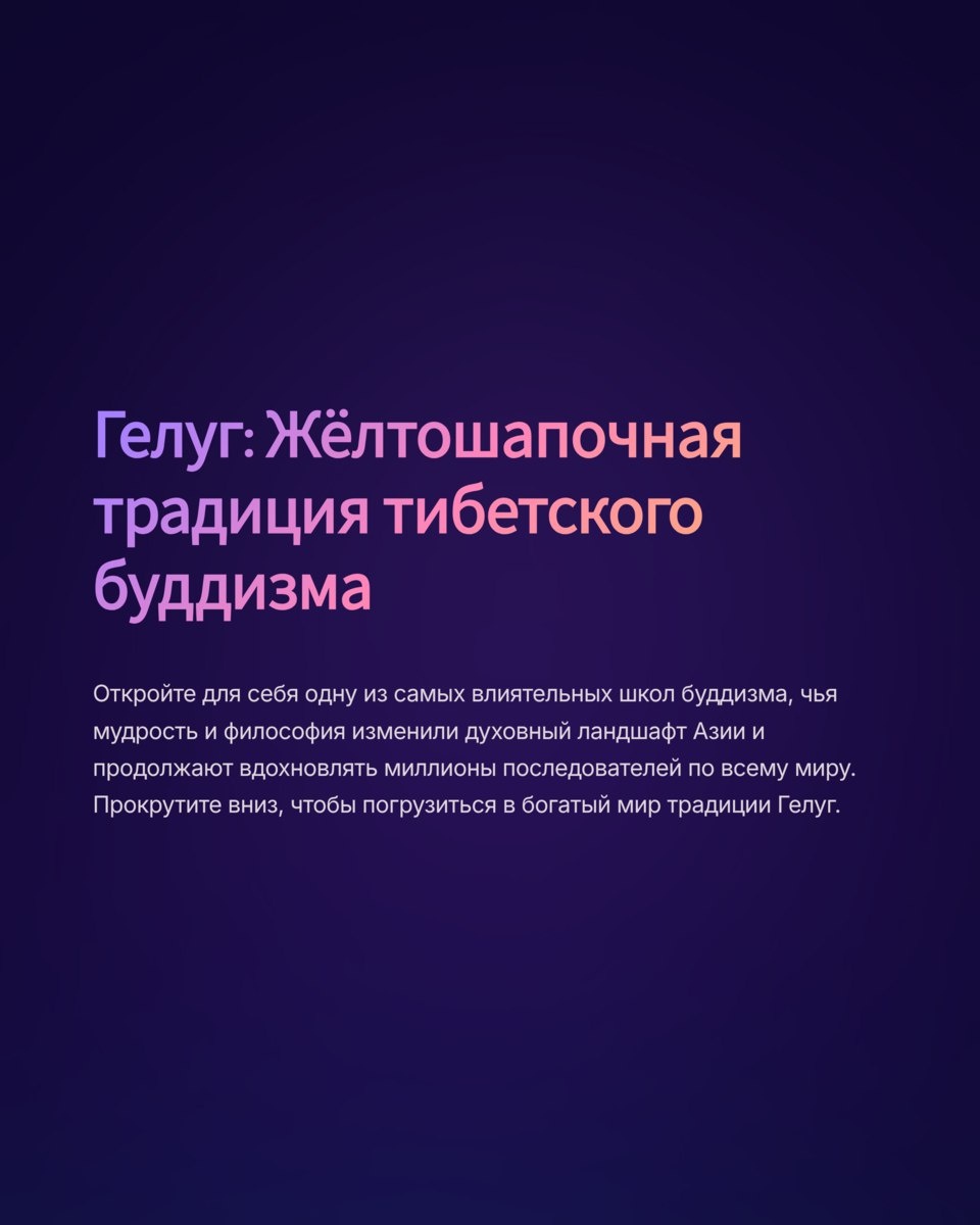 Школа Гелуг — “жёлтошапочная традиция” тибетского буддизма, пришедшая в Бурятию из Монголии в XVII–XVIII веках. Здесь строились первые дацаны, был утверждён пост Пандито Хамбо-ламы, а буддизм стал частью культуры и самобытности бурят. Ещё больше материалов о традициях — на канале https://t.me/universe_buryat