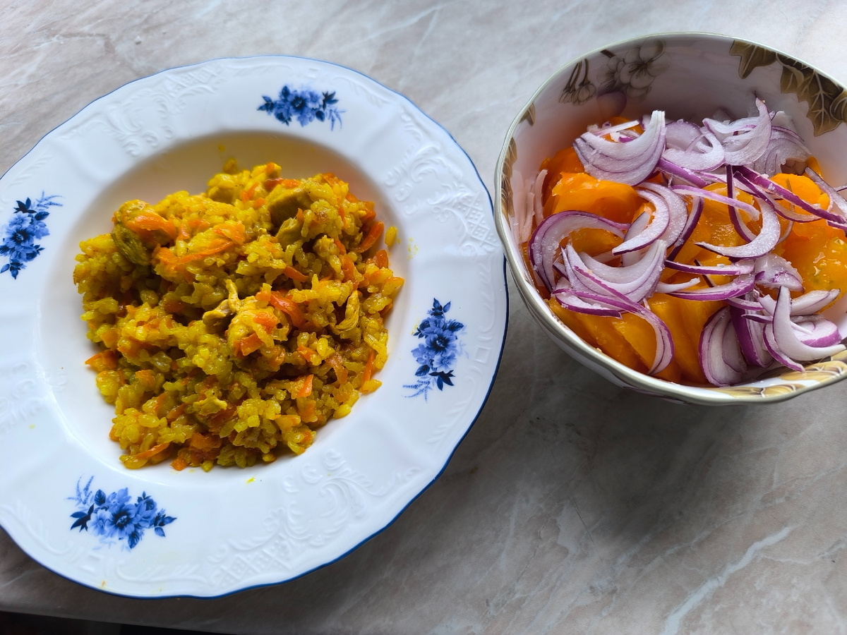 Ух, друзья, не заметила, как наступил вечер! Вроде только недавно было раннее утро, а уже темно! И спать хочется ужасно! Утро сегодня было приятное -- солнечное и тёплое. Решила никуда не торопиться и не спеша переделать все свои утренние рутины, а может ещё и больше поухаживать за собой. Но из ухода за собой, кроме рутин, только нацепила патчи. Сегодня не ездила на дачу, потому что нужно было разобраться с теми вещами, что уже с дачи привезла. День прошёл в разных трудах. Работала весь день, не отдыхала, просто меняла виды деятельности. Уставала от физического труда: стирка вручную покрывала с веранды и белые шторы с веранды в порошке замачивала и простирывала немного вручную. И сразу садилась гладить постиранное. Так немного отдыхала. Потом ещё готовила обед: каша рисовая с курицей и овощами и салат из помидоров с ялтинским луком. После обеда опять гладила, стирала, убиралась на кухне, мыла посуду и так весь день по кругу потихоньку не спеша работала. Результатом стала разобранная ба