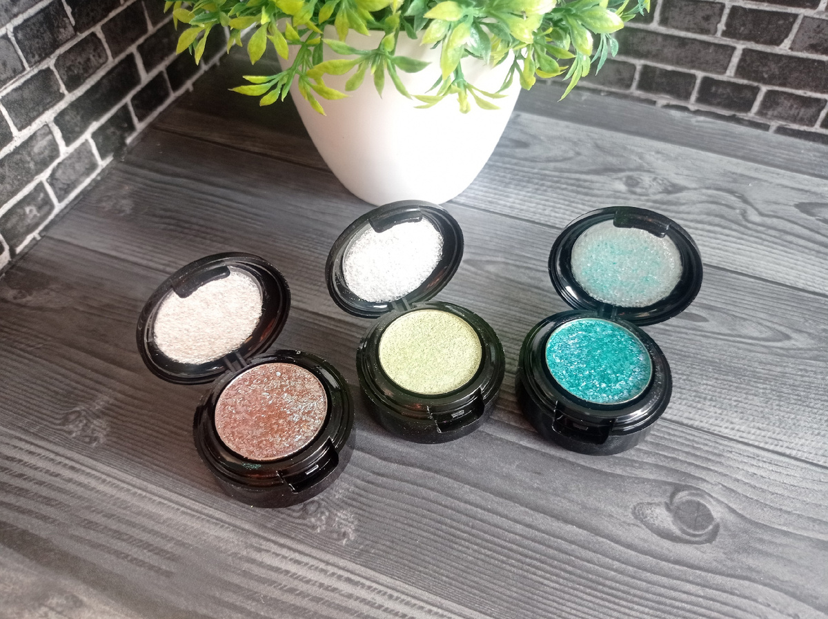 Спарклы красивые, очень сияющие, но по качеству не одинаковые. 05 оттенок и 07 ужасно катаются на базах. Им нужен пирог из базы, матовых теней и клея для глиттера, чтобы они держались, а вот 011 - беспроблемный.