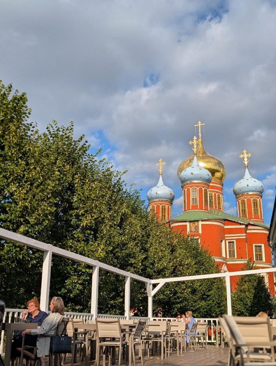 Пока все толкаются в хайповой буфетной при Иоанно-Предтеченском монастыре на Китай-Городе, мы нашли веранду с лучшим видом